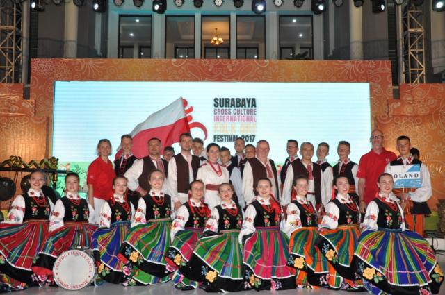 Na antypody poleciała z Sokołowa 27-osobowa delegacja: dwudziestu tancerzy, pięciu muzyków oraz dyrekcja Sokołowskiego Ośrodka Kultury, który był organizatorem wyjazdu. Nasi artyści już w samolocie (w drodze powrotnej było podobnie) wzbudzili zainteresowanie załogi i na jej prośbę dali koncert muzyczny. Po dodarciu na miejsce, od pierwszego dnia, kiedy to zaprezentowali krakowiaka podczas barwnej parady przebiegającej główną arterią trzymilionowej stolicy Jawy Wschodniej, poruszyli Indonezyjczyków. Tysiące zgromadzonych widzów z wielkim entuzjazmem oklaskiwało popisy młodych Polaków. Wrażenie było obustronne: mieszkańcy Surabayi zachwyceni byli naszymi narodowymi tańcami, pieśniami i strojami, a także dynamiką i ogromną energią prezentowaną przez tancerzy. Natomiast wzruszenie w "Sokołowianach" wywołał widok ogromnych tłumów tak żywo i ciepło przyjmujących kulturę naszego kraju.