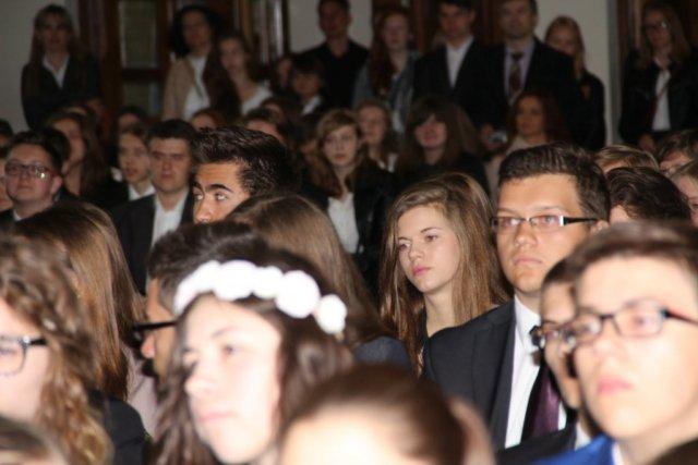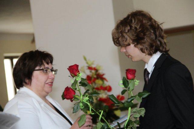 Szczególnie uroczyście ostatnie chwile w szkole przeżywali absolwenci gimnazjum. Żegnali się z nią przez ucałowanie sztandaru. Potem nadszedł czas na wręczenie im świadectw i nagród za szczególne osiągnięcia intelektualne i sportowe oraz pracę na rzecz szkoły. Do nich też kilka słów pożegnania skierowali młodsi koledzy, a towarzyszyła temu projekcja okolicznościowego filmu. Nie zabrakło też wyrazów wdzięczności ze strony samych absolwentów.