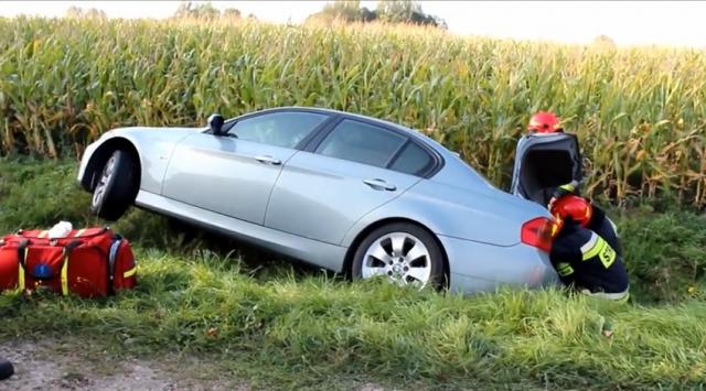 Kierująca samochodem osobowym BMW, mieszkanka powiatu węgrowskiego, z nieznanych dotąd przyczyn wpadła do przydrożnego rowu.