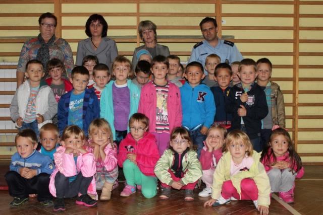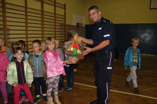 Na zakończenie dzieci wręczyły samodzielnie wykonany bukiet kwiatów i zrobiły wspólnie z policjantami pamiątkowe zdjęcie.