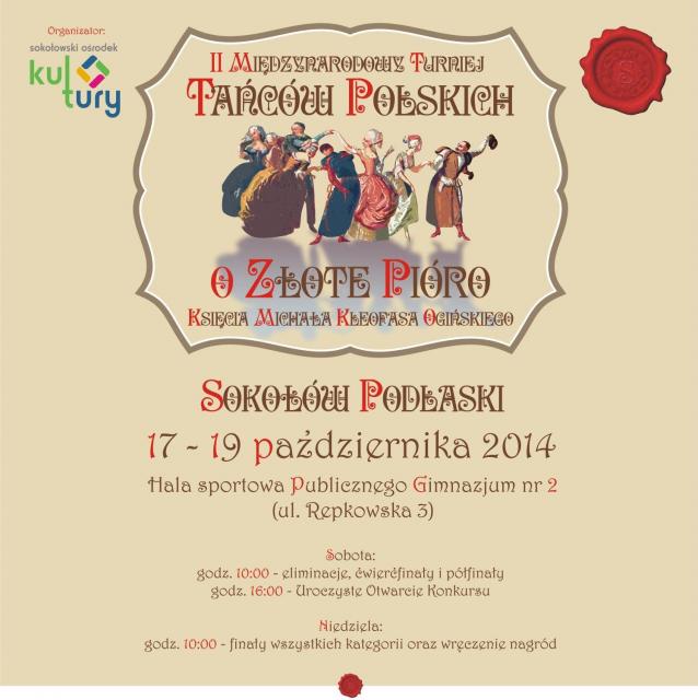 W najbliższy weekend w Sokołowie Podlaskim odbywał się będzie II Międzynarodowy Turniej Tańców Polskich o Złote Pióro Księcia Michała Kleofasa Ogińskiego".