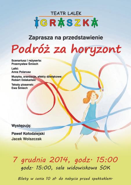 Na deskach sceny Sokołowskiego Ośrodka Kultury wystąpi Teatr Lalek "Igraszka" z przedstawieniem "Podróż za horyzont" w reżyserii Przemysława Śmiecha.