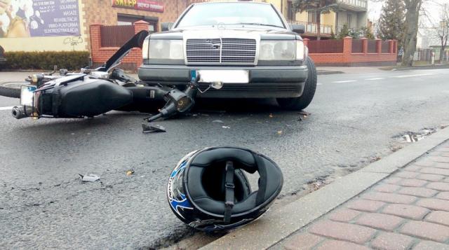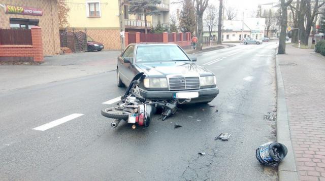16-letni motorowerzysta z urazami ciała trafił do siedleckiego szpitala, po zderzeniu z mercedesem. Sprawcą czołowego zderzenia był kierowca mercedesa, który najprawdopodobniej nie zauważył jadącego z przeciwka motorowerzysty.