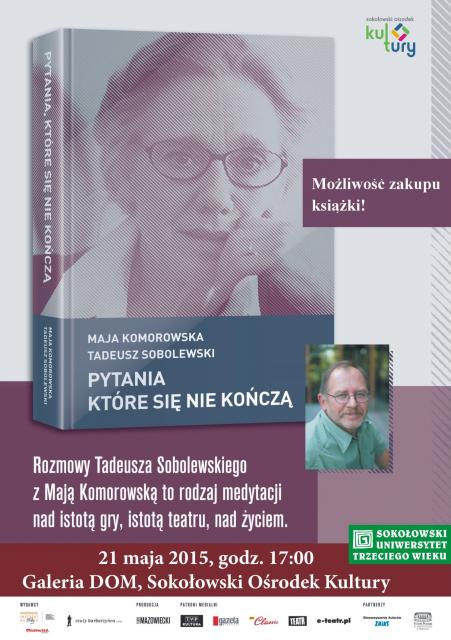 Sokołowski Ośrodek Kultury oraz Sokołowski Uniwersytet Trzeciego Wieku zapraszają na spotkanie z aktorką Mają Komorowską oraz promocję książki pt. "Pytania, które się nie kończą".