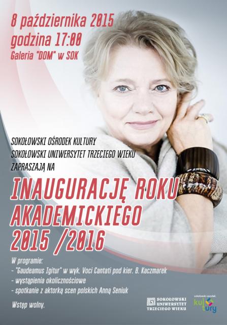 W Galerii "DOM" w SOK odbędzie się inauguracja roku akademickiego 2015/ 2016 w Sokołowskim Uniwersytecie Trzeciego Wieku. Gościem specjalnym będzie aktorka Anna Seniuk.
