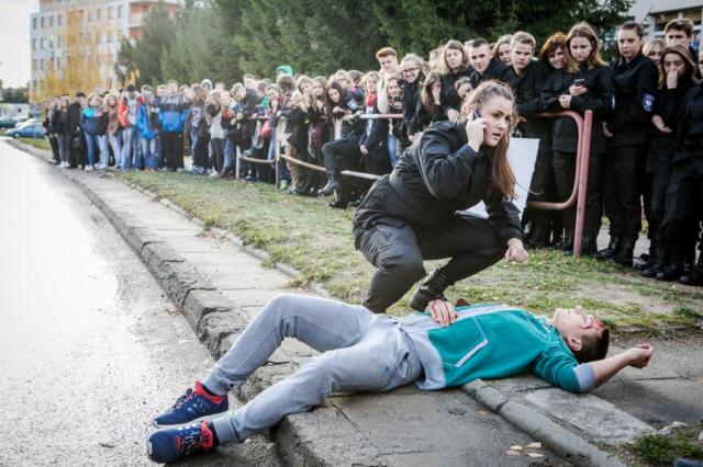 Podczas pokazu młodzieży zostało przypomniane hasło tych działań "Mnie się to nie zdarzy" - pokazując jak niewiele może dzielić nas od nieszczęścia.